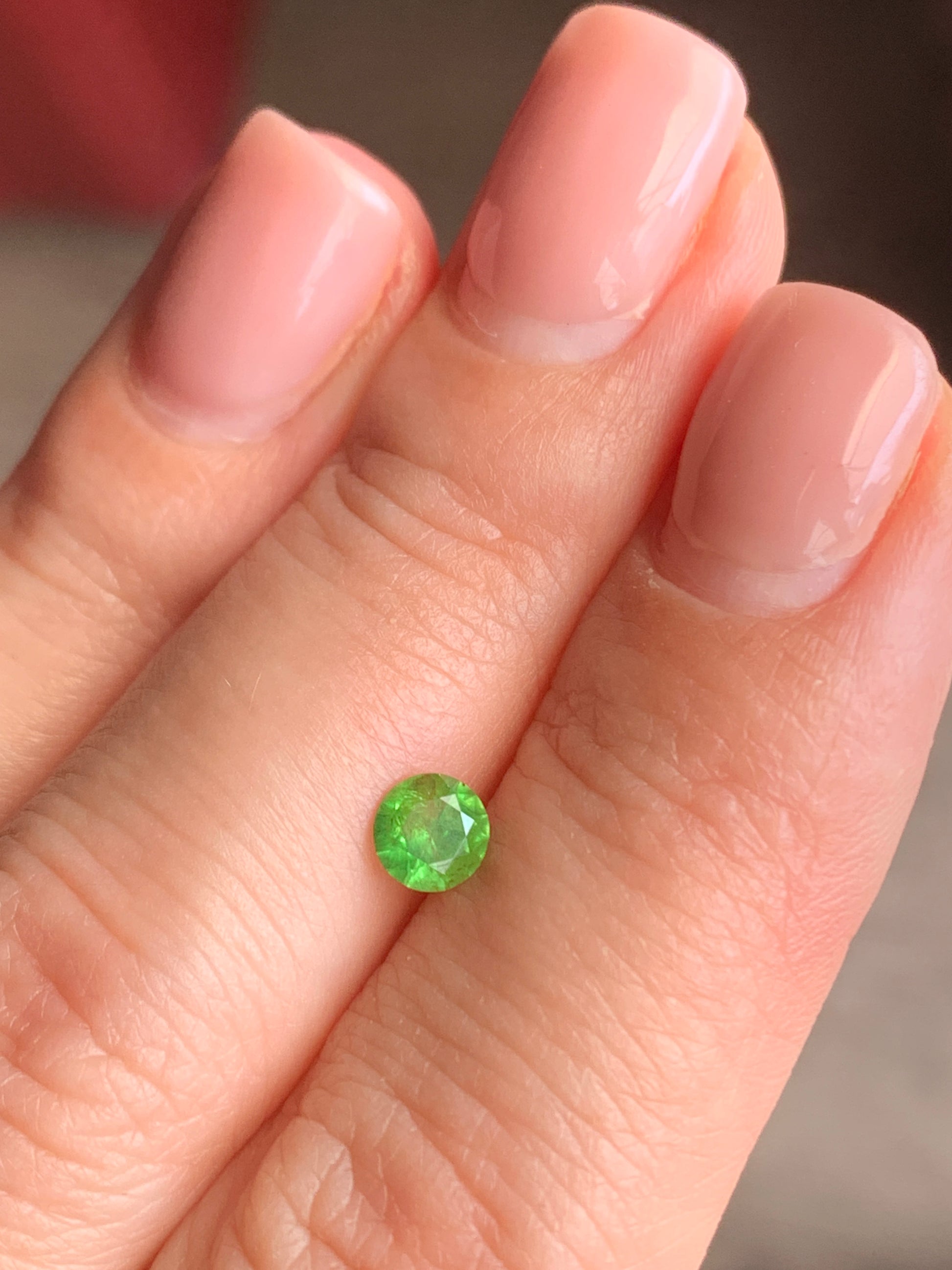 0.5 ct, Faceted Russian Demantoid with bissolite inclusions