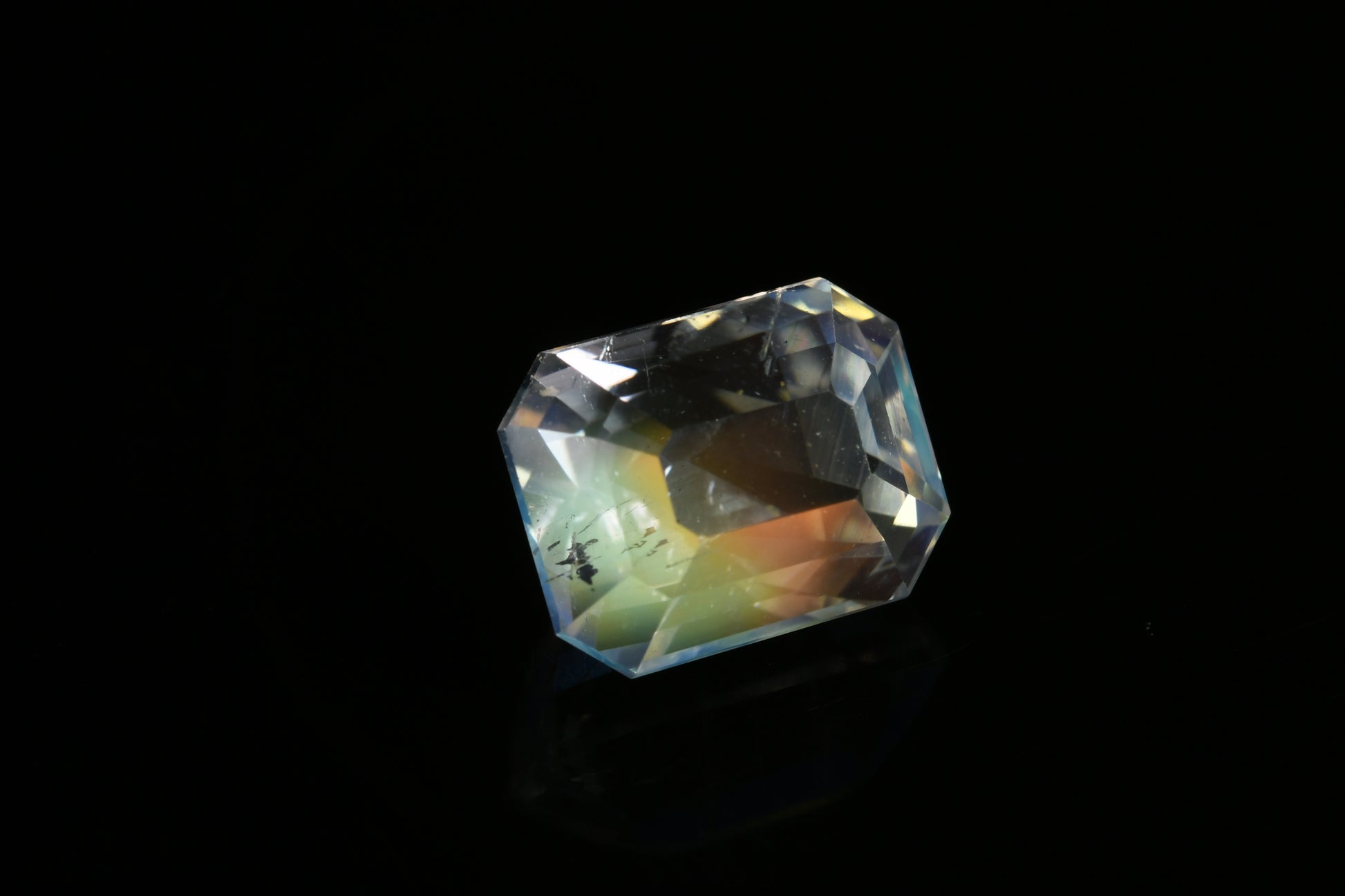 Faceted rainbow sheen moonstone