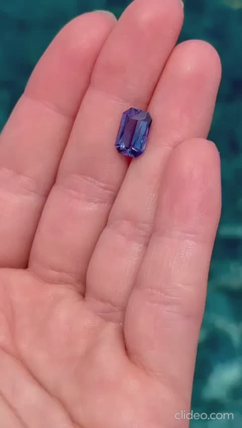 An interesting Tanzanite is quite a non-standard color. Usually it is a warm blue turning into purple. This handsome man has a cold blue, closer to sapphire. The cut is also on top.