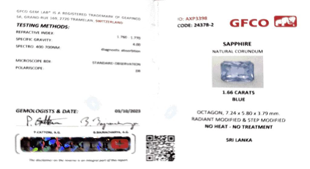 Natural unheated sapphire 1.66 ct